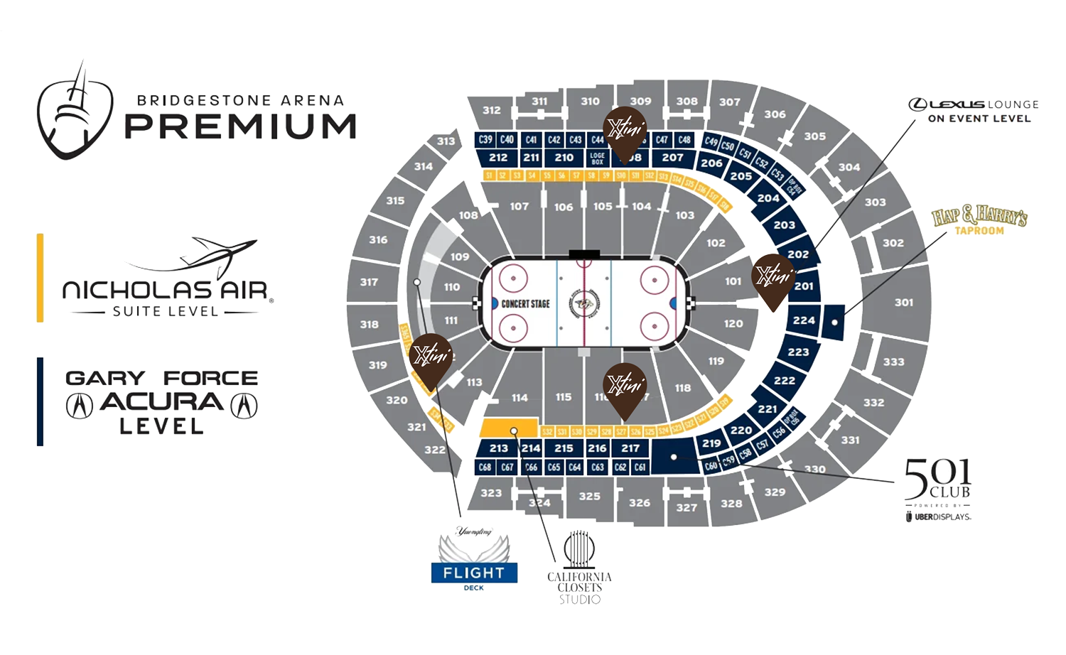 Use this map to find a bar in the Bridgestone Arena to enjoy Xtini.